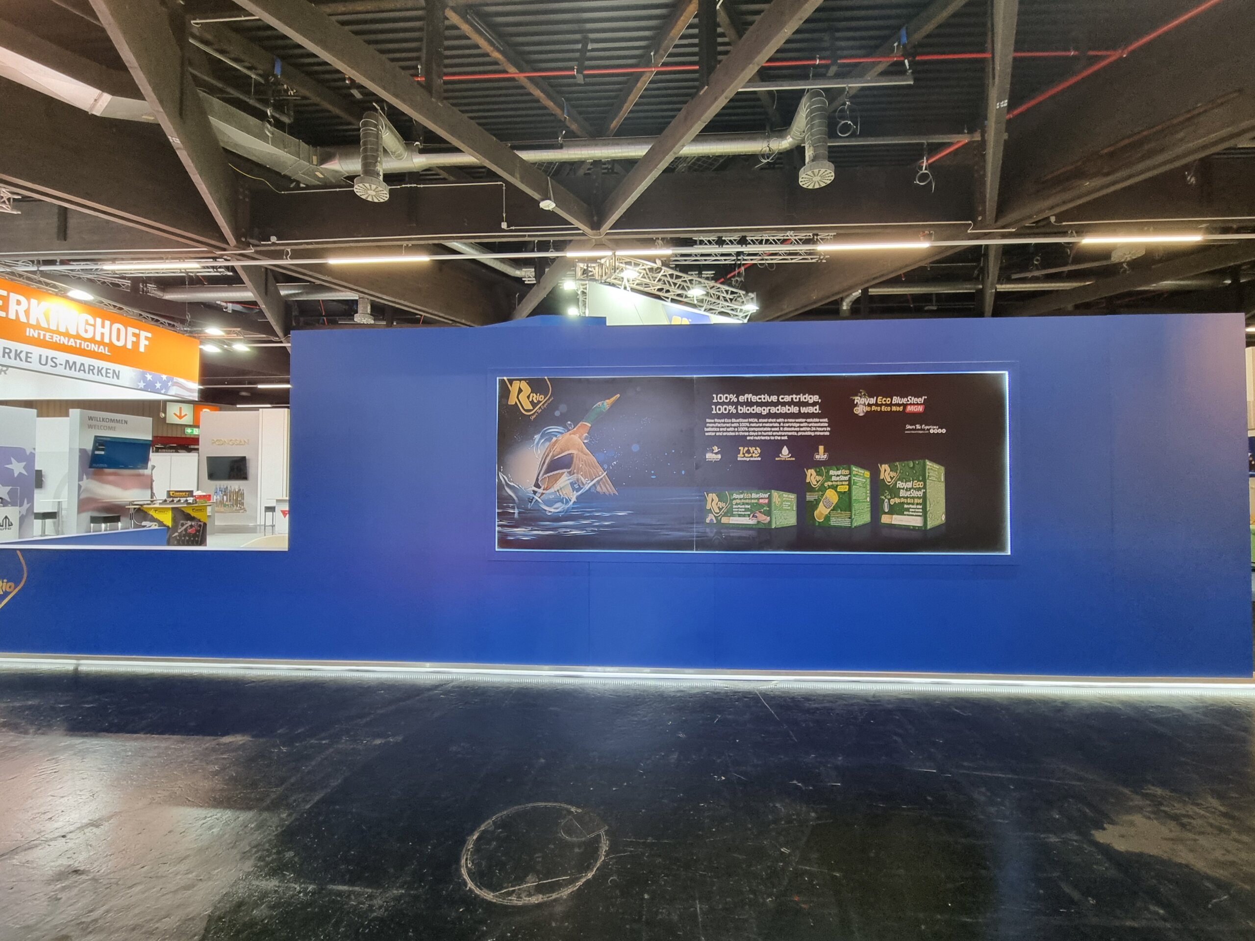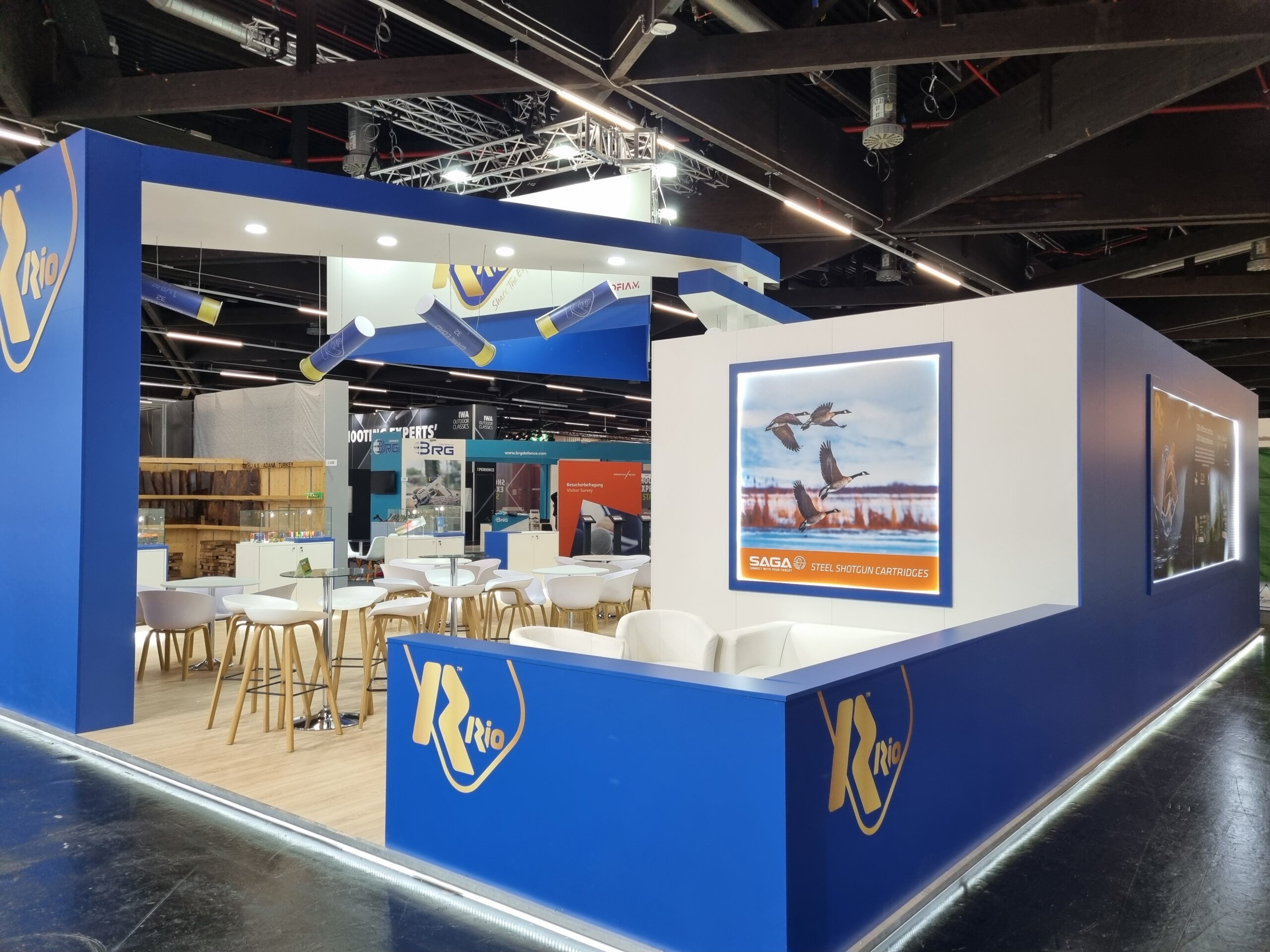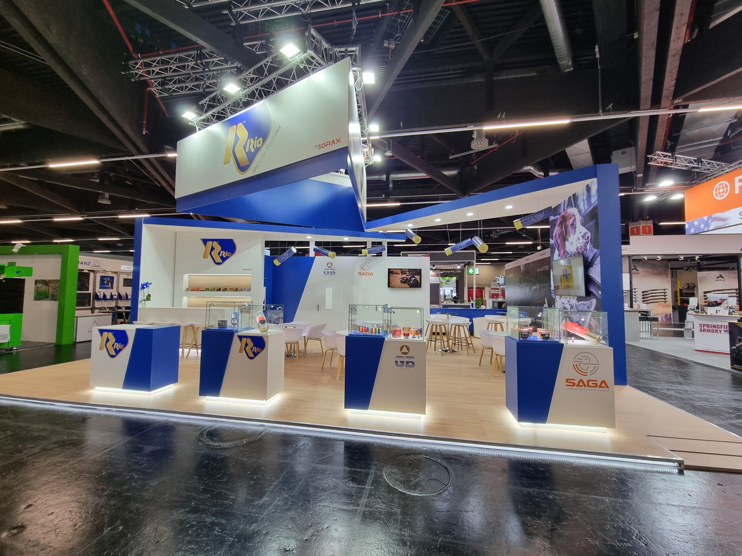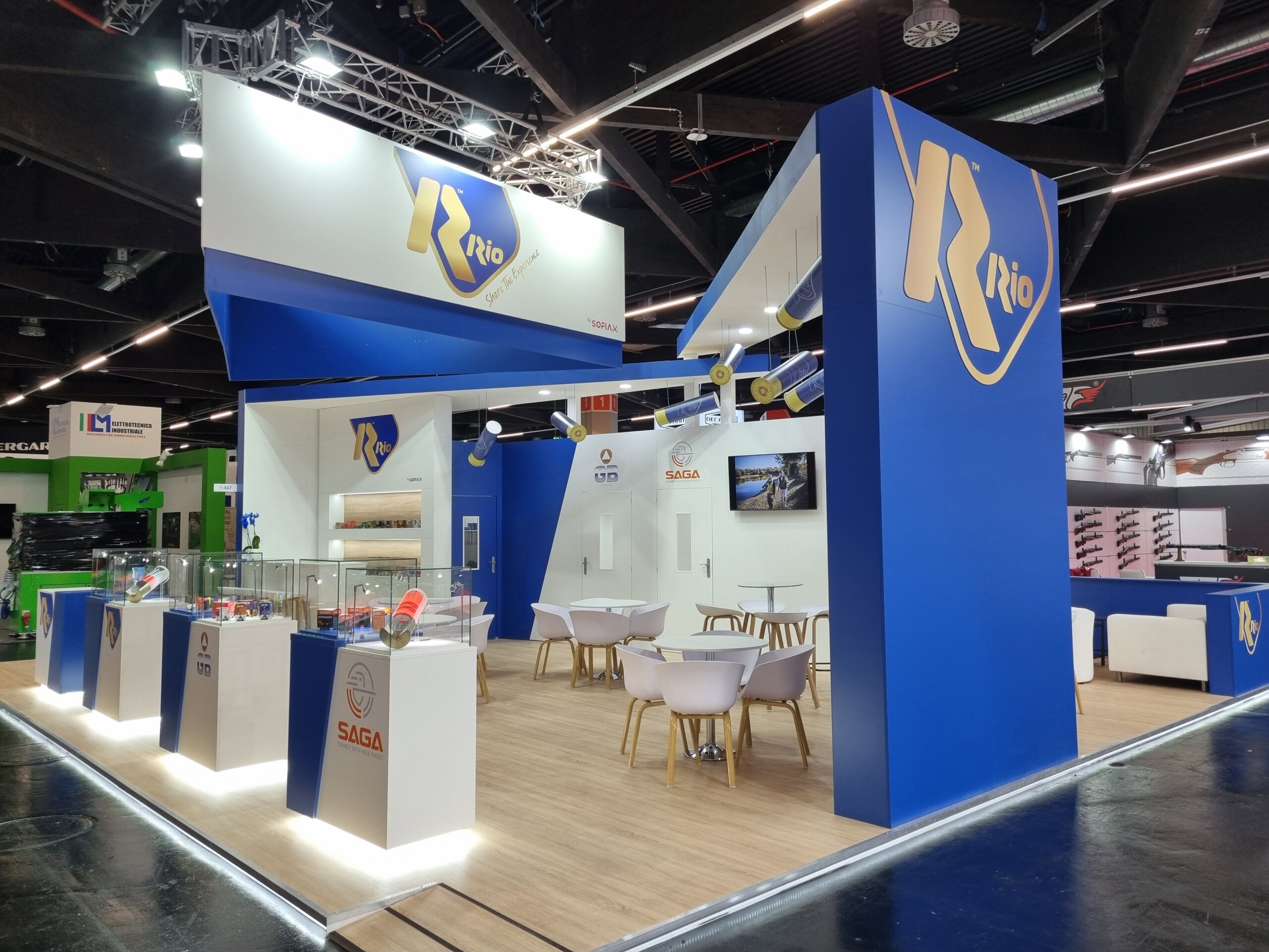 Furthermore, the RIO brand needed to connect with a diverse audience: distributors, sport shooting professionals, hunting experts, and international partners: all with high technical standards and very specific expectations. The exhibition space had to speak a universal language, capable of synthesizing over 125 years of industrial experience into a direct, understandable, and memorable trade fair experience.