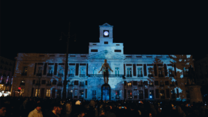 Mapping Stranger Things 5 Video mapping sobre la fachadade la Puerta del sol de Madrid. Video mapping. Video MappingPuerta del Sol de Madrid para Andtonic.